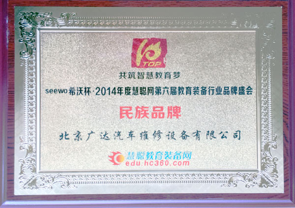 2015民族品牌證書